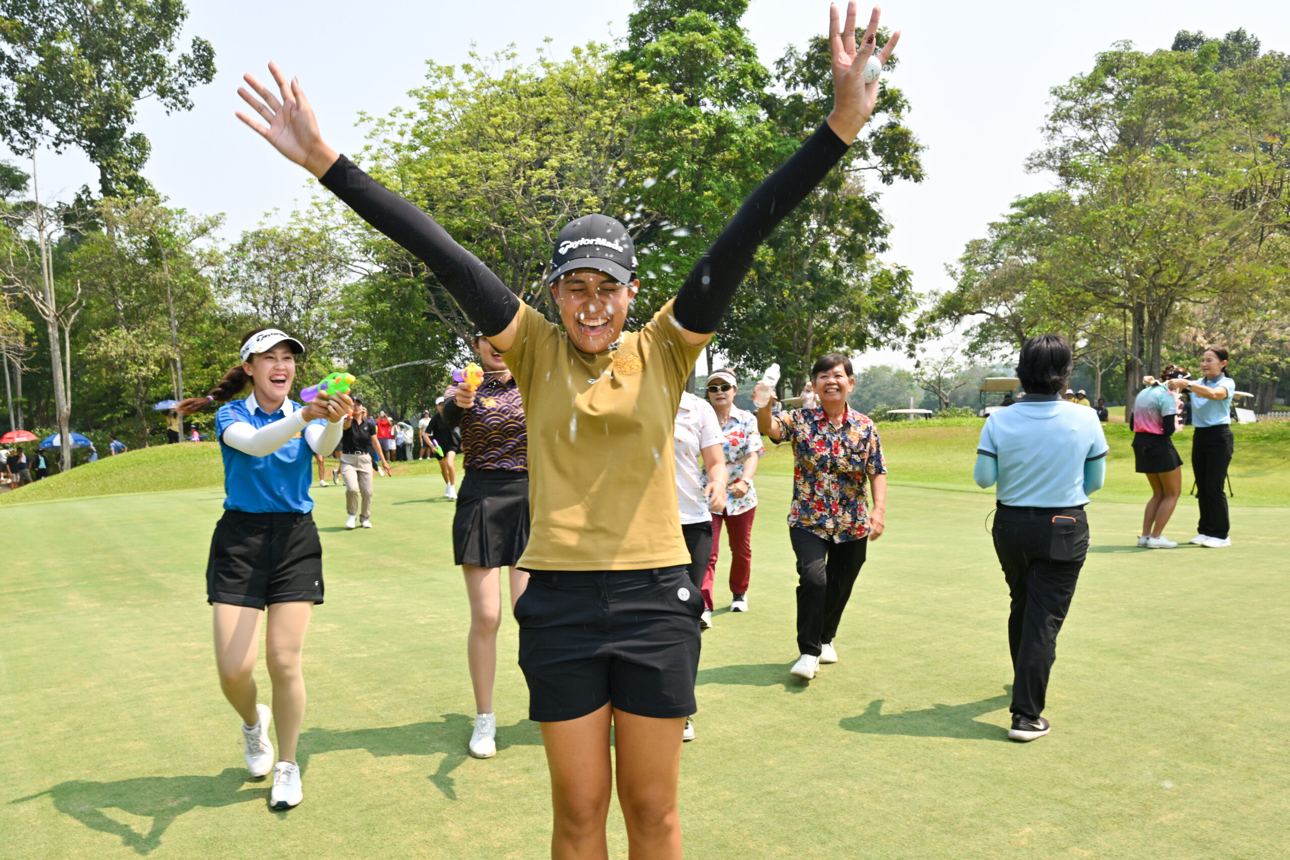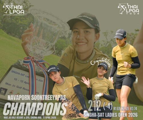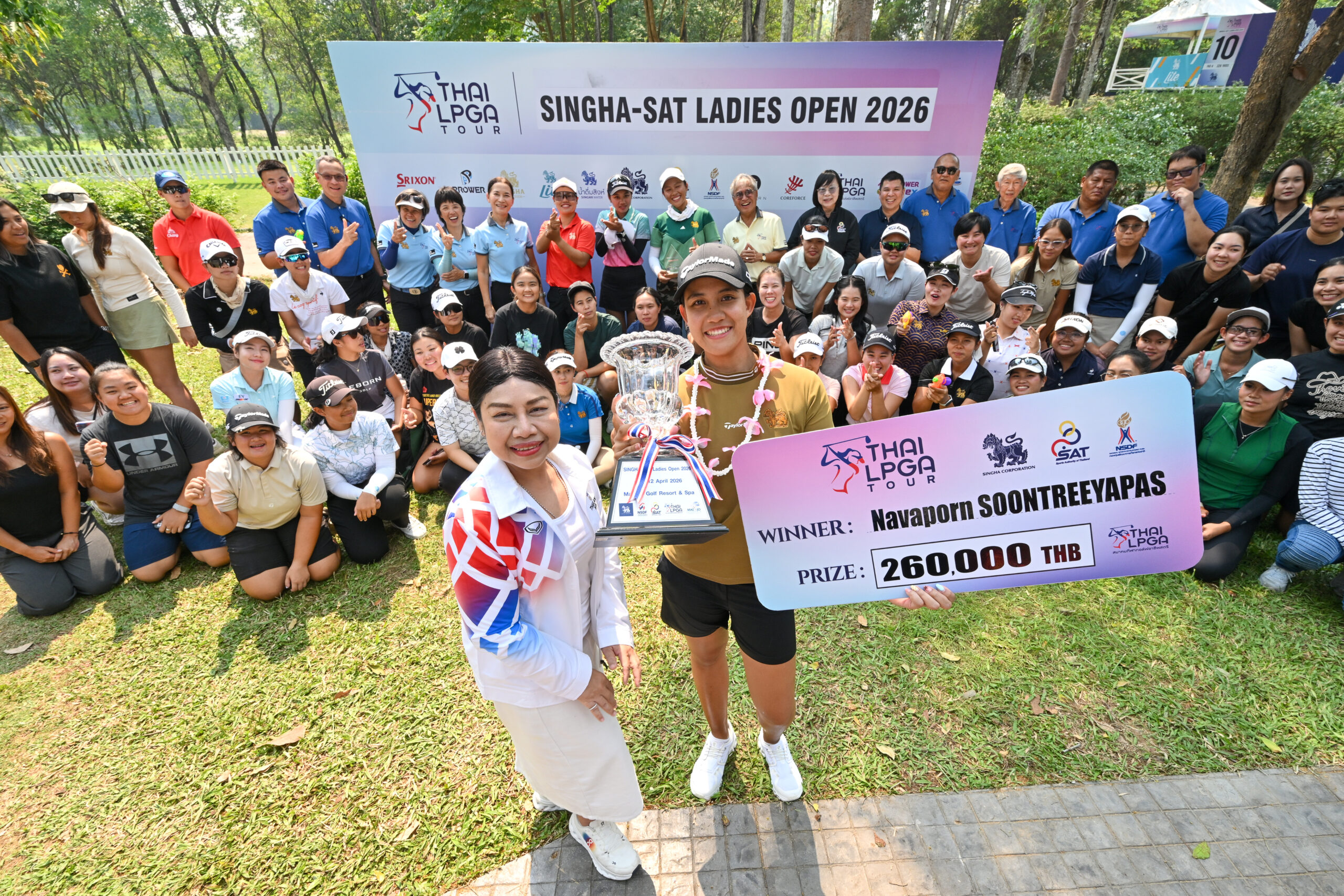 นวพร สุนทรียภาส วัย 20 ปีจากกรุงเทพฯ ผู้นำสองรอบแรก ทำสกอร์เข้ามาเท่ากับพัทธนันท์ ติกุล โปรดาวรุ่งวัย 18 ปีจากโคราช ที่ 4 อันเดอร์พาร์ 212 โดยนวพร ยิงเบอร์ดี้ได้ในรอบแรกของการเพลย์ออฟ คว้าแชมป์ “สิงห์-เอสเอที เลดีส์ โอเพ่น 2026” พร้อมเงินรางวัล 260,000 บาท ณ สนามแม่โจ้ กอล์ฟ รีสอร์ท แอนด์ สปา พาร์ 72 ระยะ 6,397 หลา จ.เชียงใหม่ เมื่อวันที่ 12 เมษายน 2569