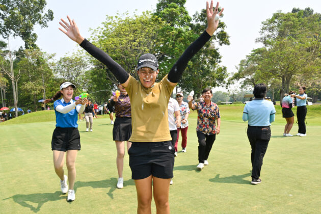 “สนามหน้าที่รอยัลฮิลส์ หนูก็ไปแข่งด้วยเหมือนกันค่ะ ก็อยากให้ทุกคนติดตามไทยแอลพีจีเอด้วยนะคะ สำหรับทุกคนที่เข้ามาแข่ง ทุกคนมีฝีมือมากๆอยู่แล้ว อยู่ที่วันนั้นจะเป็นวันของใครมากกว่า อยากให้ทุกคนสู้ๆค่ะ”